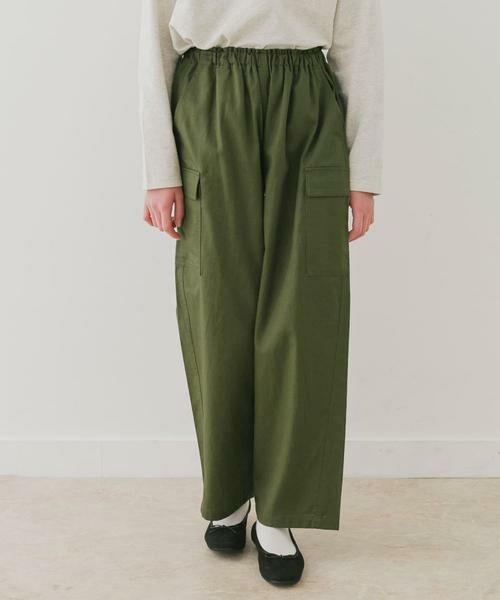 深めの股上やワイドなシルエット、フラップ付きの大きなポケットなど、ディテールのメンズっぽさは残しながらも、落ち感のある混合生地を使用することで上品な印象に仕上がっています。