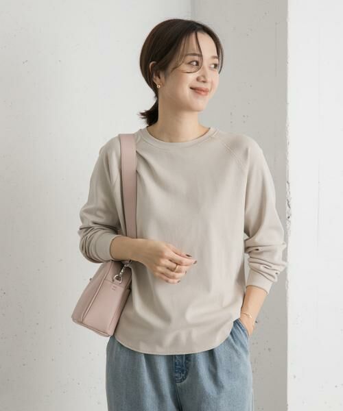 ラグランスリーブで裾をラウンドさせたシンプルながらも大人っぽい印象で、一枚でも存在感のあるデザインに仕上げました。