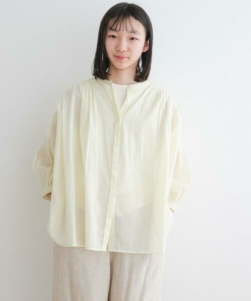 軽く清涼感のあるコットンボイル生地を使用したブラウスは、全体的にたっぷりと入ったタックやギャザーが程よいボリュームを出してくれるアイテム。
