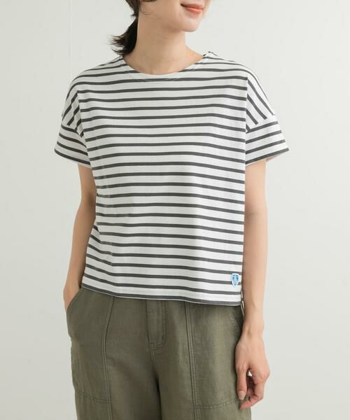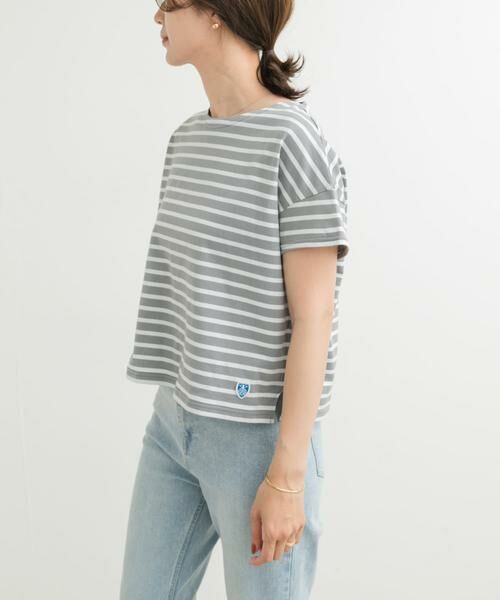 40番手のコーマコットン糸を双糸にしたコットン100%の天竺素材を使用した、ボートネックの半袖ボーダーTシャツ。