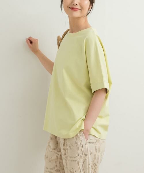 シンプルですがドルマンスリーブや袖口の折り返しデザインがポイントになります。一枚で着てもかわいくて、着回しが効きそうなTシャツです。