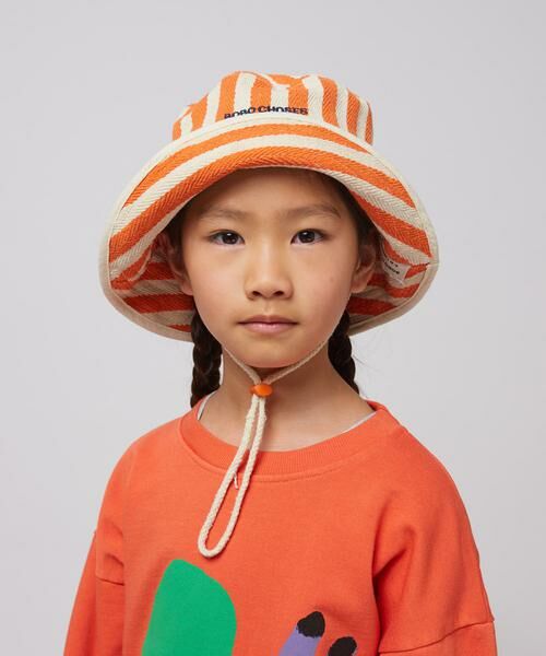 オレンジとベージュのストライプが目を引く、BOBO CHOSESらしい遊び心たっぷりのバケットハット。