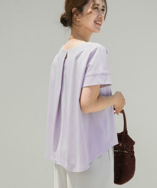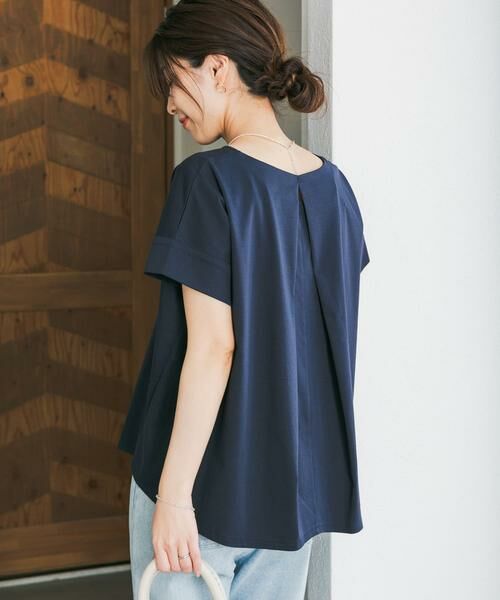 シンプルなデザインが魅力のカットソーは、バックタックが施されており、後ろ姿にさり気なくアクセントをプラスします。