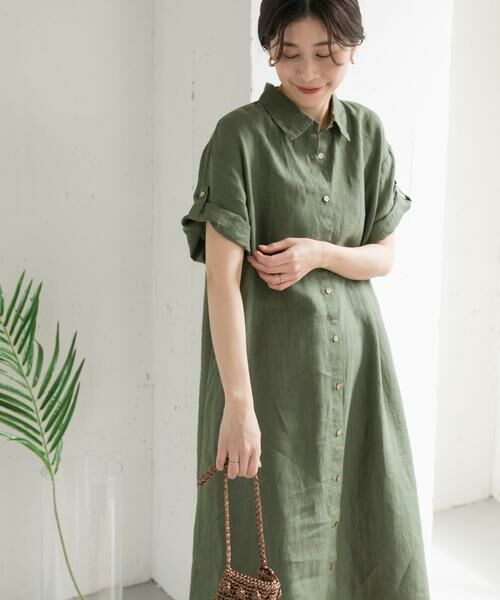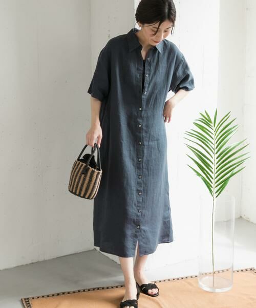 夏の必須素材・リネンで仕立てたベーシックなシャツワンピースを半袖の仕様にしてご用意しました。