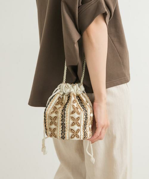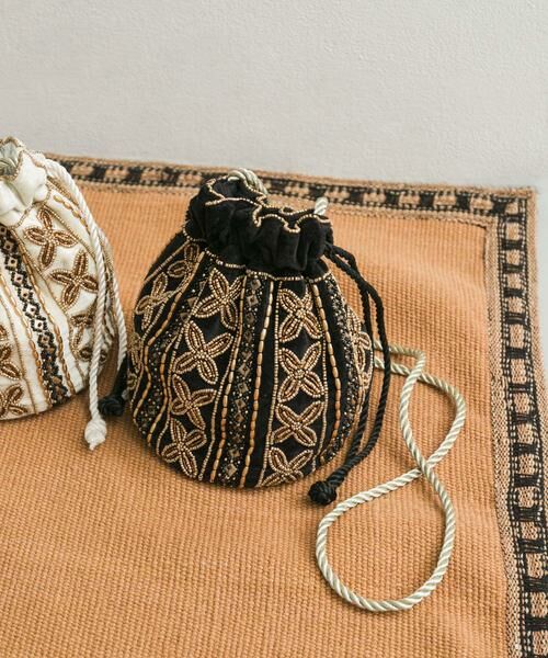 ベルベット生地にインド伝統の繊細なビーズ刺繍が施された巾着バッグ。