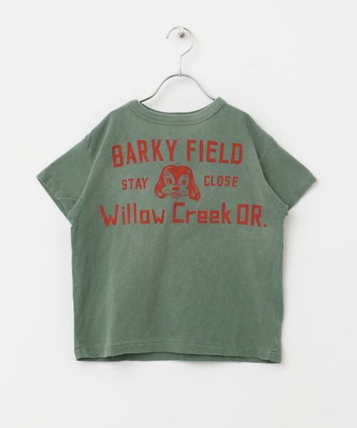 架空のDOG PARK(BARKY FIELD 1990年代)のTシャツ。とぼけたアメリカンコッカースパニエルが可愛いアイテム。 後ろには味わいのある刺繍が施されています。 まるで古着の様な色あせた加工で、こなれたTシャツに仕上げています。天竺素材を使用した、軽く柔らかい着心地が魅力。ギフトにもオススメなアイテムです。