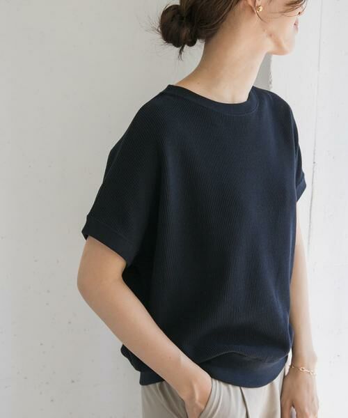 ふっくらとした柔らかな生地は着心地が良く、軽やかな着用感ながらも、ウエストのリブがメリハリをプラスし、ワイドパンツやギャザースカートとも好相性です。