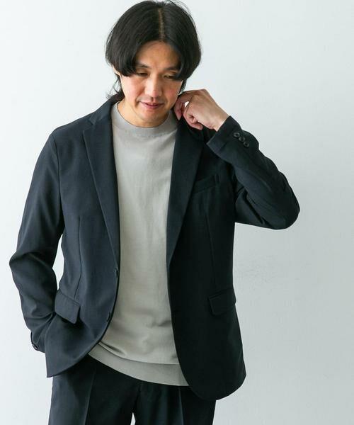 麻のようなメランジ感が特徴の生地を使用したジャケット。