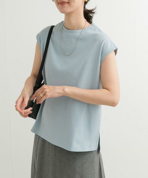 ドライタッチで肌離れの良い生地を使用したフレンチスリーブのカットソーは、暑い季節でも快適に過ごせる優秀アイテム。