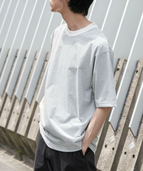 細ピッチの落ち着いたボーダーは、カジュアルからきれいめまで幅広く使いやすいアイテムです。