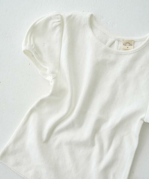 繊細なアイレット編みと、ふんわりとしたパフスリーブが愛らしいデザイン。シンプルながらも、さりげない存在感があり、毎日のコーディネートをやさしく彩ってくれる1枚です。通気性に優れたコットン素材で、暑い季節でもさらりと快適。首元や袖口の仕立てもやわらかく、お子さまの肌にやさしい着心地です。ナチュラルなカラー展開で、どんなボトムスとも相性がよく、デイリー使いからお出かけスタイルまで幅広く活躍します。