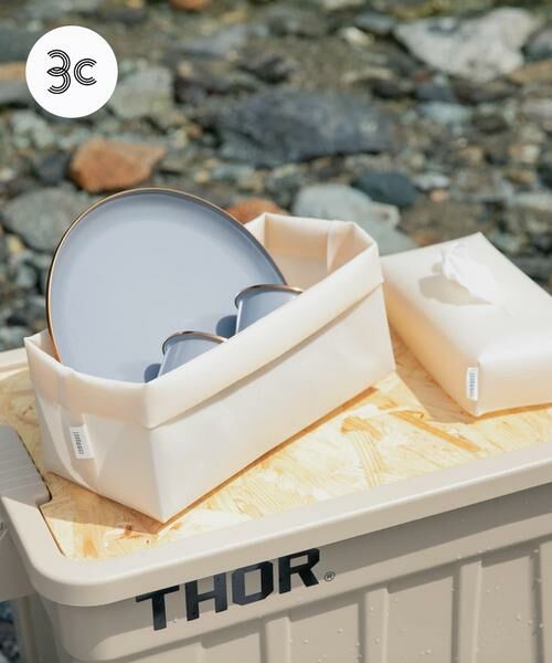MULTIPURPOSE BAGのLサイズを軸に、洗濯機周りの収納ケース、キャンプシーンでの調味料器具等、多種多様な用途で使っていただける、背の低いバージョンを制作しました。