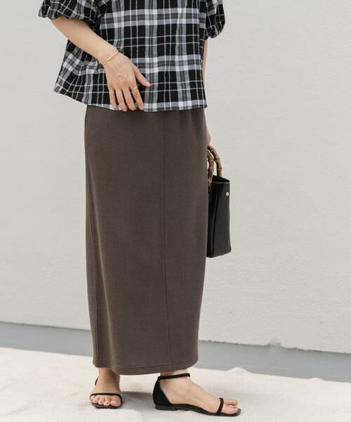 ブークレ糸を用いたダブルフェイスリブでふっくらとした表面感のスカートをご用意しました。