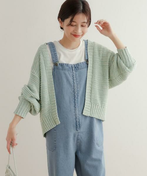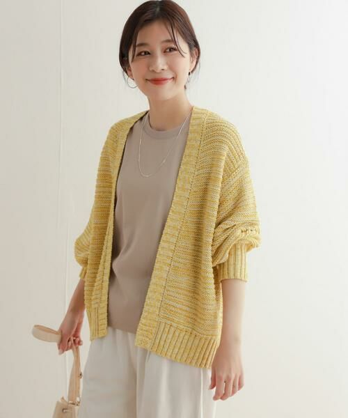 テープヤーンとリリヤーンを引き揃えたざっくり編みのカーディガンをご用意しました。