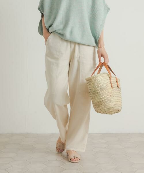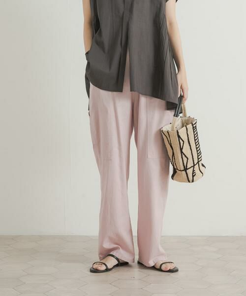 落ち感のある柔らかな生地やウエストを包み込むハイデザインが、カジュアルダウンしすぎず、女性らしいスタイリングにミックスしやすく仕上げました。