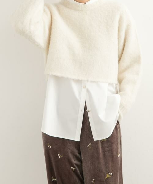 ゴールドのボタンが特徴のシンプルなシャツは、やや長めに設定した着丈がニットやススウェットのインナーとして使いやすいアイテム。