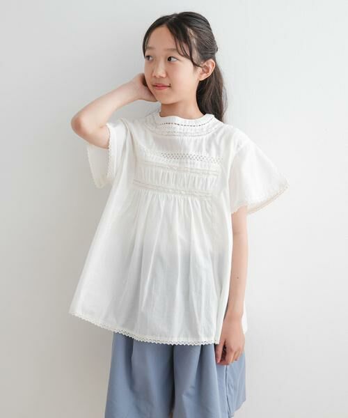 DRA5-33G293 ハシゴレースシャーリングブラウス(KIDS)