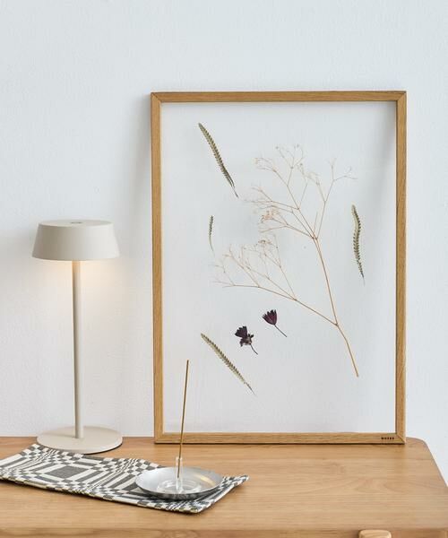 フレームは縦横どちらの向きでも掛けることができ、表裏の区別がないため、平面的な見せ方だけではなく、両側から見せる飾り方も可能です。
