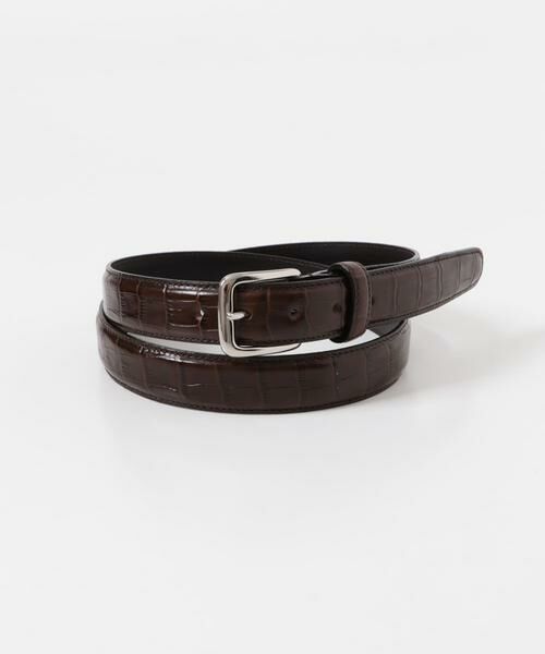 上質なレザーに艶感を待たせ、クロコの型押しを施したレザーベルト。
