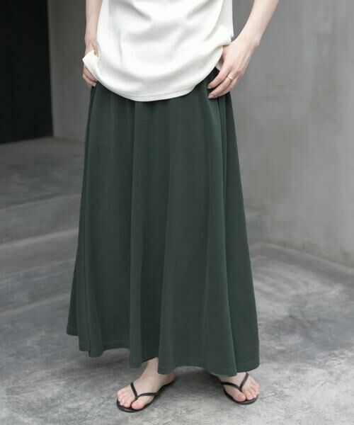 独特ながらも上品でさり気ない光沢感とカジュアルな印象を受けるモダール生地でスカートをご用意。