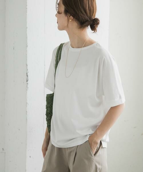 落ち感のあるキレイなカットソー地は、シルクのようになめらかな肌触りで素肌に優しくフィット。