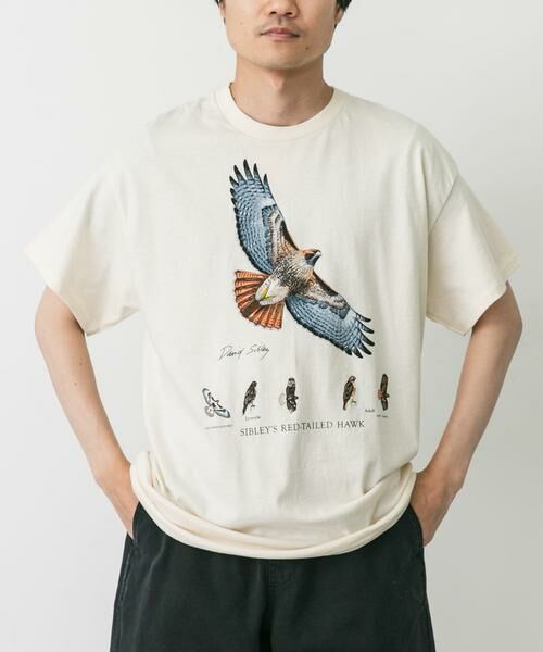 「LIBERTY GRAPHICS」のアートTシャツ、Sibleys Red-tailed Hawkは、美しいアカオノスリ(Red-tailed Hawk)の姿をフィーチャーした一枚です。