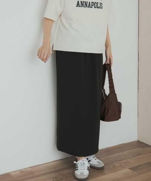 上品なシボ感と快適な着心地を両立した、カットソー素材のストレートスカート