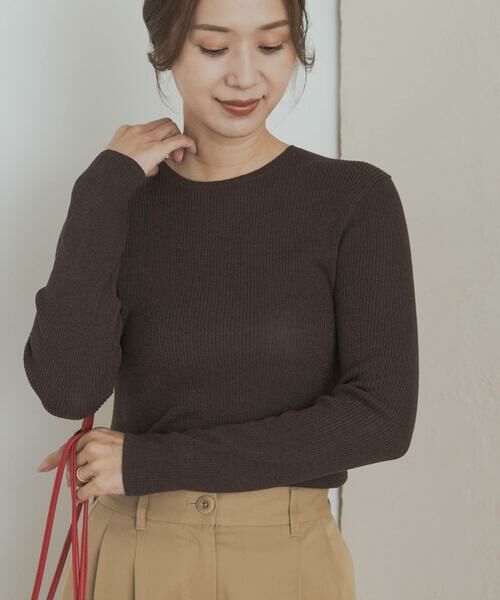 さり気ないラメが華やかさを添える、リブプルオーバーニット