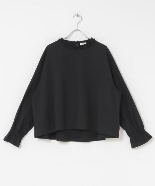 コンパクトなシルエットの長袖プルオーバーブラウス。