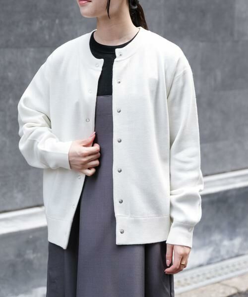 ミラノリブ組織を採用したフォルム感のあるシルエットを演出するカーディガン。