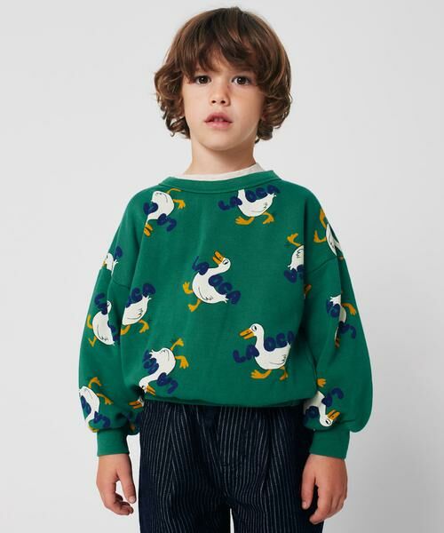 グリーンをベースにガチョウのデザインを配したスウェット。ゆったりめのシルエットに快適な着心地の素材の一枚です。ギフトにもおすすめです。