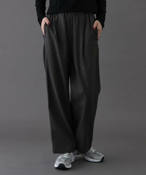 ウエストはオールゴムのドローストリング紐付きで楽な穿き心地を叶え、すとんと落ちるストレートシルエットがシンプルでカジュアルからオフィス使いにも重宝します。