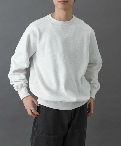 落ち綿を使用したサスティナブルな糸を使用したシンプルなスウェットは、素材ならではの表面感がヴィンテージ風でカジュアルな一着に。
