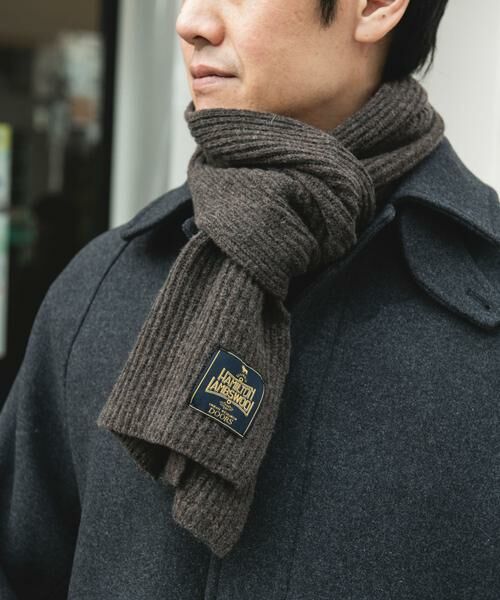 ワークやミリタリー感あるコート、ニットにも馴染む素朴な表情で、ぐるっと巻いて首元をしっかり覆う使い方と、一巻きでさっと出かける使い方どちらでも収まりがよいです。