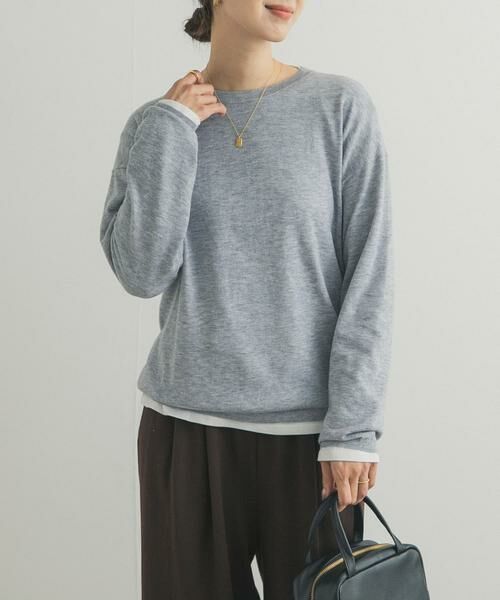 ニットプルオーバーはさらっとした柔らかい素材感で、落ち感があり重ねても着ぶくれせずにすっきりと着用可能。
