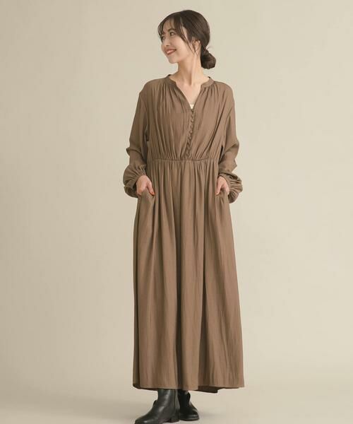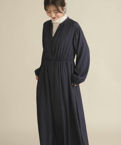 きれいめな落ち感のある素材で仕立てた、女性らしい雰囲気のワンピース。