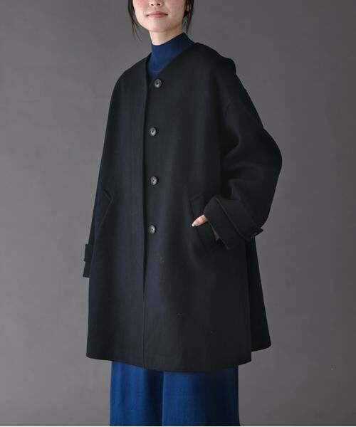 大人カジュアルな雰囲気のウールノーカラーコートをご用意しました。