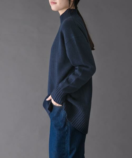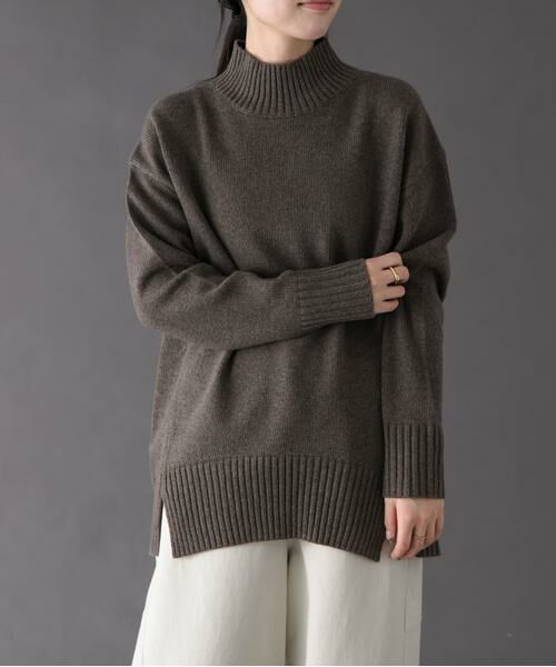 一枚で様になる長め丈のニットプルオーバー。