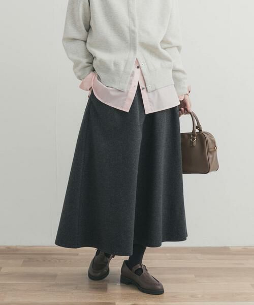 裾に向かってゆるやかに広がるシルエットが女性らしさを引き立てるフレアスカート。