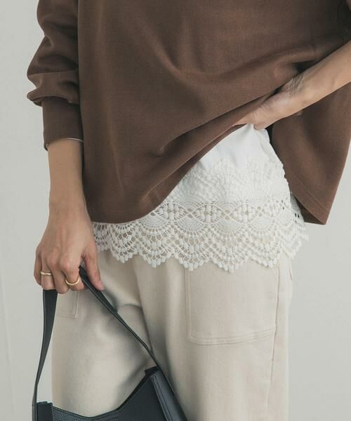 ニットやスウェットのインナーとして大活躍する、裾レースデザインのロングスリーブTシャツ。