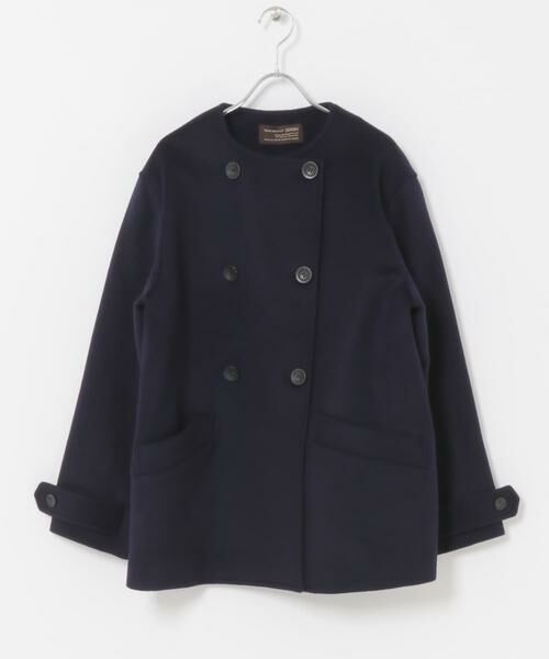 上質なウール素材を使用したノーカラーコート。