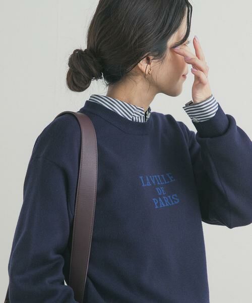 ロゴを編み込んだダブルジャガードニットでありながら、使用している糸は柔らかくハリが出にくいため、程よい落ち感を生み出し、すっきりとしたシルエットで着用できます。