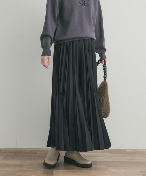 きれいなプリーツラインが美しく揺れ、ボリュームのあるニットともバランスよく合わせられるため、カジュアルからきれいめまで幅広いスタイリングに対応します。