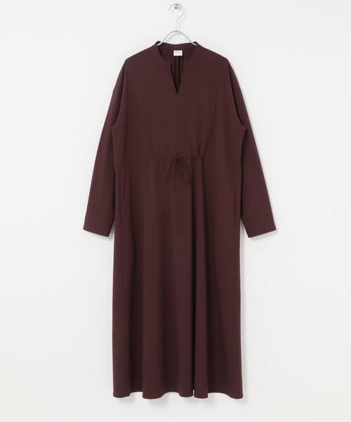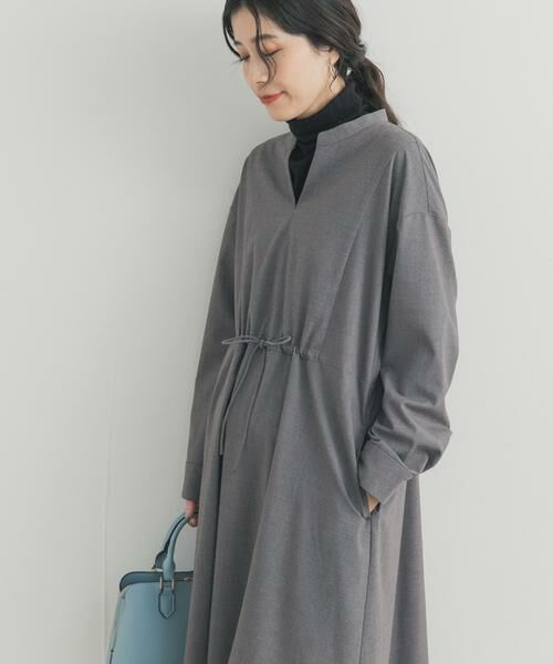 ウエストをドロスト仕様で調整できる、きれいめな一枚仕立てのワンピース。