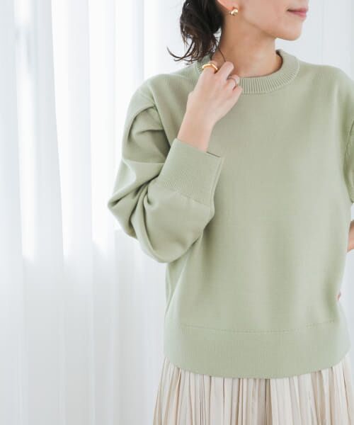 シンプルなデザインのボディをベースに、タックを入れたボリュームスリーブが女性らしさを演出します。