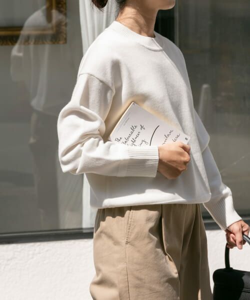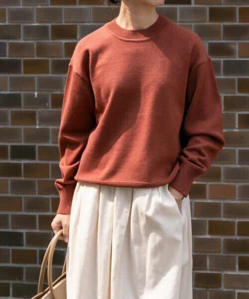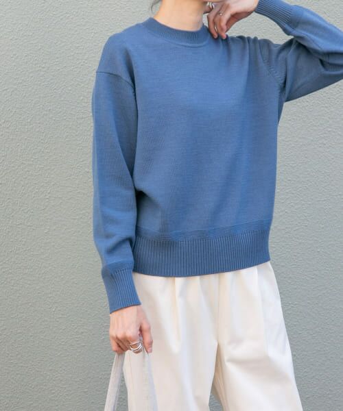 定番で着られるクルーネックニットは、マシンウォッシャブル可能な点が嬉しい一着。