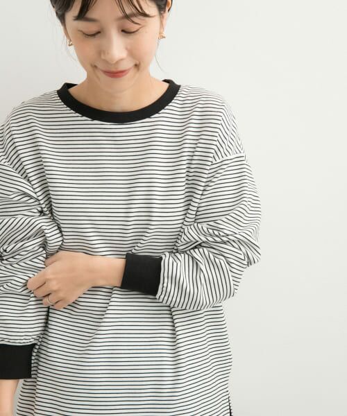 程よい緩さのあるルーズシルエットと少し細めのピッチのボーダー柄が抜け感を演出し、大人カジュアルに着こなせるアイテムです。