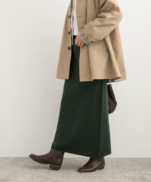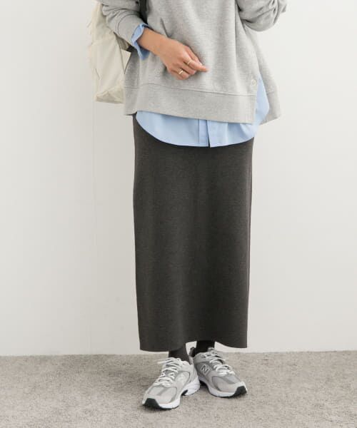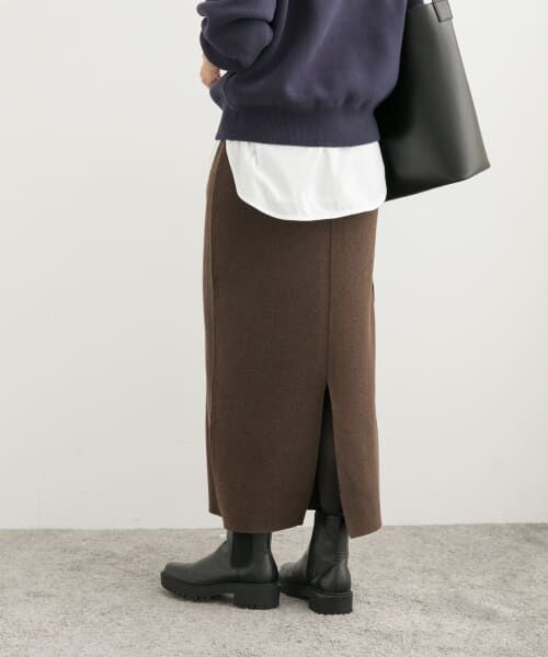 きれいな表面感のスムースニットスカートは、縦のラインを演出してくれるストレートシルエットにこだわった大人の一着。