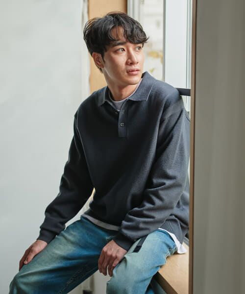 DOORSオリジナルの機能素材「UR TECH 200日ニット」を使用したニットポロシャツ。