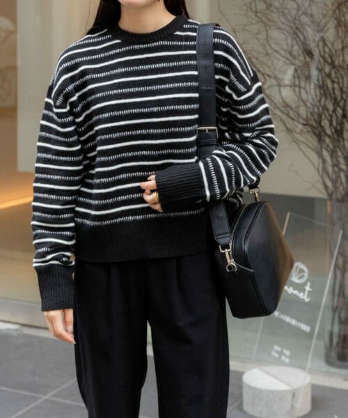 ボーダーは立体的な柄で仕上げることで、表情豊かな印象をプラスし着丈を長くしすぎないのでワイドパンツやスカートと合わせてもマッチします。